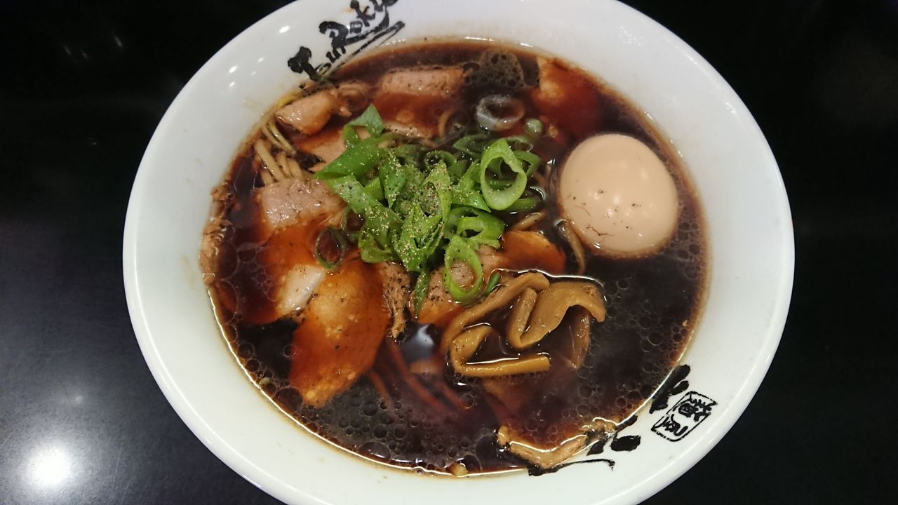 難波の丈六 2019年08月21日 カテゴリ:しょうゆ 個人的評価:★★★☆☆黒門市場の近所にある裏路地の有名ラーメン店です。場所がらか、店内には芸人さんのサインが沢山飾ってあります✨開店直後に行ったのにまさかの二順目でした😢おかげで約束の時間に遅れそうでした((( ;゚Д゚))) やっぱり有名店なんですね。30分待ってようやく着丼🍜 むむ、これは富山ブラック系なのか❗スープ、青ネギ、豚バラチャーシュー、めちゃくちゃ美味しいです😉👍